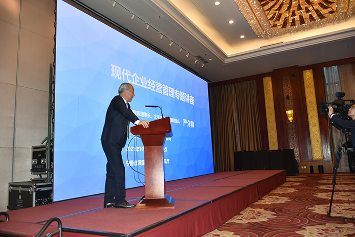 嚴(yán)介和理事長受邀為甘肅藥業(yè)投資集團(tuán)總部全體員工、所屬企業(yè)中層以上干部、三級公司主要負(fù)責(zé)人以及相關(guān)合作企業(yè)負(fù)責(zé)人進(jìn)行主題為“現(xiàn)代企業(yè)經(jīng)營管理”的專場授課。魏陽主持活動。